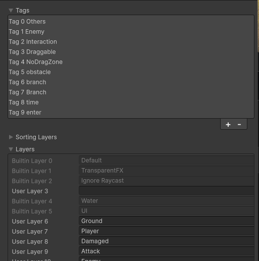 tag와 layer에 둘 다 enemey 라는 네이밍이 존재하며 혼동이 일어날 수 있다.