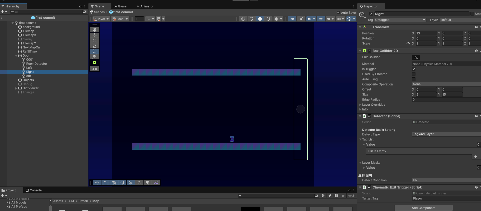 위와같이 방의 입장판별, 이동을 막는 부분에 대한 콜라이더가 매우 지저분하며, 하나로 통합이 되지 않았다.